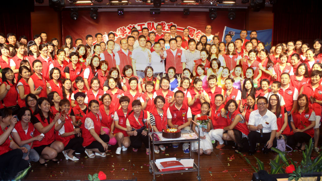 一首《献给志愿者的诗》拉开庆典帷幕,何宗防副校长代表学校的致辞,《真心英雄》、南园版《小苹果》等节目精彩纷呈的演出,将庆典活动掀起一个又一个高潮。随后,钟书记、王强校长以及义工队主席方俊玲上台为获评“爱心班级”的班级颁奖。活动中,钟书记即兴讲话,感动与肯定,幸福与希望溢于言表。